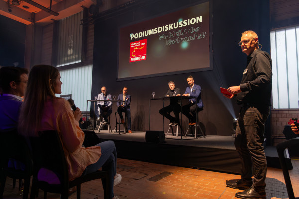 Ganz neu in diesem Jahr war die Podiumsdiskussion, bei der Uwe Seitz, Hauptgeschäftsführer des IVM, mit Fabian Dresler, Chefredakteur von MOTORRAD, Ulrich Chiellino, Leiter Verkehrspolitik beim ADAC, und Klaus Limbächer, Motorradhändler aus Stuttgart (Limbächer & Limbächer GmbH), unter Moderation von Jens Möller-Töllner, Redakeur von MOTORRAD, über die Themen Nachwuchs und Motorradführerschein diskutierte. Besonders darüber, wie die in den vergangenen Jahren deutlich gestiegenen Kosten für den Motorradführerschein wieder gesenkt werden können, wurde gesprochen. Dabei war auch die von Bundesverkehrsminister Patrick Schnieder vorgestellte Führerscheinreform ein Bestandteil der Diskussion.